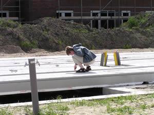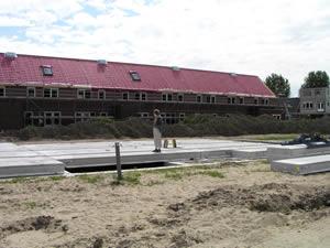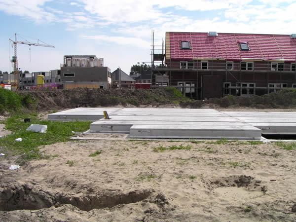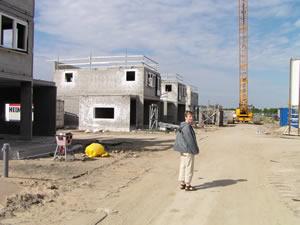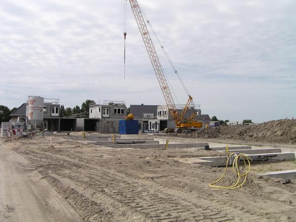 14 juni 2003 Er wordt vreselijk hard gewerkt op dit moment. Zelfs vandaag op Zaterdag wordt er een woning in elkaar gelast. Ik denk dat er haast wordt gemaakt om voor de bouwvak zoveel mogelijk woningen in elkaar te zetten. Iedere woning die in elkaar wordt gezet, betekent namelijk dat er ergens een rekening op de mat valt. Je betaalt de woning namelijk per vloer. Ook al duurt het nog maanden voordat de woning wordt opgeleverd, er is al een groot bedrag betaald. |