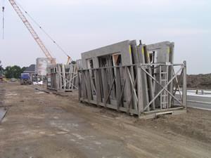 Op de foto links staat een "kratje" met achtergevels. Op de foto rechts een "kratje" met voorgevels. Je staat er vaak niet bij stil, maar alles weegt enorm zwaar. Voor elke handeling is een kraan nodig. |