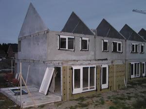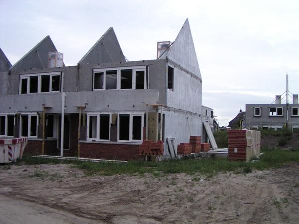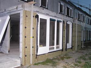 De achterzijde van de woning wordt helemaal ingepakt in het isolatiemateriaal. Zeer dik spul. Volgens mij is onze energierekening zo direct erg laag. |