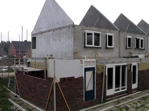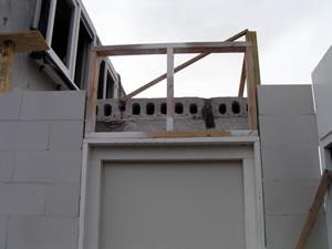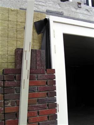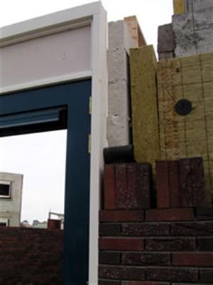 Hier nog enkele details. Te zien is hoe de kozijnen worden ingemetseld. |