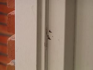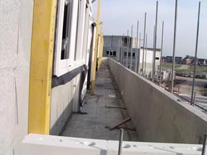 Links een kijkje op het balkon. Nu lijkt het net een galerij, maar dat zal nog wel veranderen. Rechts. Nu al inbraakschade? Ik hoop maar dat ze dit netjes oplossen. |