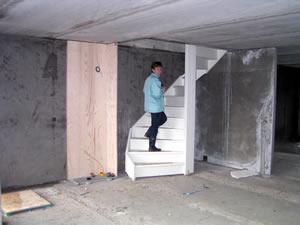 Weer een stukje dichterbij het eindresultaat. Het huis is nu glasdicht. En ..... er zijn trappen in het huis! |