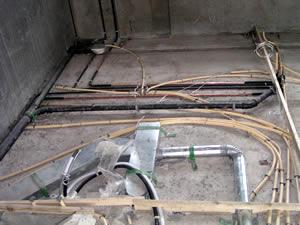 Op de rechter foto de leidingen naast de meterkast. Deze leidingen zijn verwarmings-leidingen. | ||