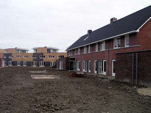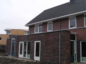nog een foto van de achtergevel. Rechts is nogmaals te zien hoe de tuingrond is aangschoven. Dit lijkt allemaal veel mooier dan het is. De grond bestaat uit klei, klei en nog eens klei. Als het regent, dan is het één grote baggerboel en als het opdroogt, dan is het k(l)eihard en bijna onbewerkbaar. |