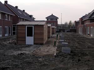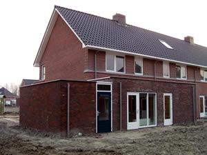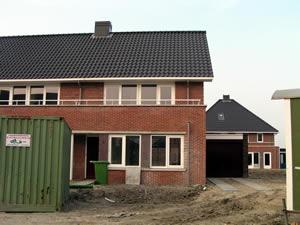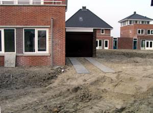 De achterkant van de woning. Op de rechterfoto is te zien dat het achterpad bijna klaar is. Het is echter wel een meter of 10 tekort. |