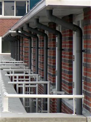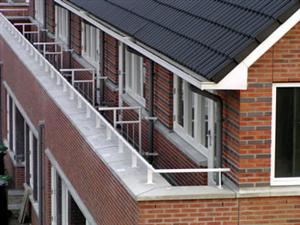 Dit lukt alleen als een andere woning toevallig openstaat. Deze foto's zijn gemaakt vanaf de "Zonnebloem" op de hoek. Dit zijn echte jaren 30 details: de regenpijpen. en de hekjes. | ||
