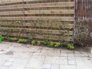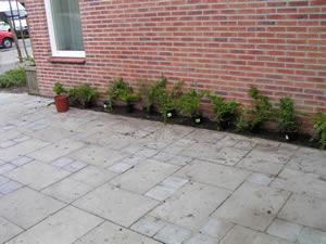 Gelukkig zijn er ook leuke dingen in de tuin. De eerste planten zitten in de grond en geven de oprit al een heel net gezicht. | ||