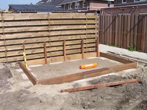 Dit zijn de zware bankirai balken waarvan de vakmensen zeggen dat ze nooit verrotten. Het zal mij benieuwen want ik hoop dat het schuurtje nog heel lang blijft staan.