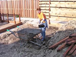 Nelina kan niet wachten om me te helpen. Zij graaft vast het stuk uit voor het kleine schuurtje. | ||