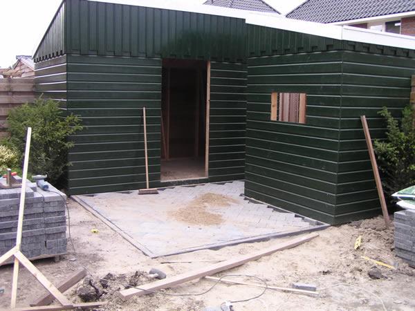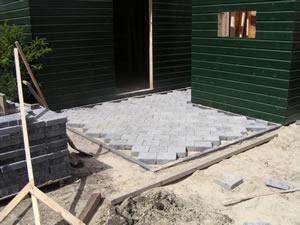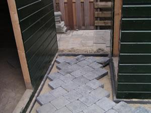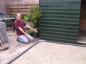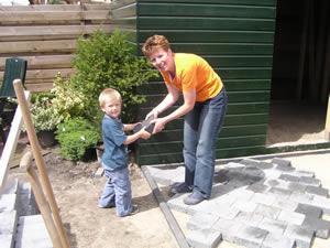 Hier wordt de eerste steen gelegd van het "straatje" voor de schuurtjes. Een memorabel moment nietwaar? |