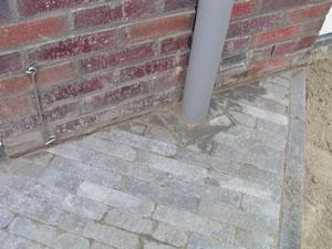 Het pad is nu ook bijna af. Ook het pad naar de deur van de bijkeuken is af. |